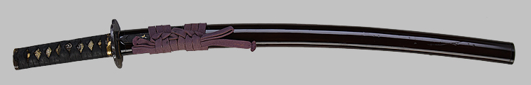 平造り庵棟 うぶ茎 小板目肌、杢交じりややザングリと肌立ちよく詰む。地沸微塵に厚くつき、細かな地景よく入り、淡く沸映り立つ。刃紋は湾れに互の目、尖り心の刃交じる。匂い口フックラと沸、小沸よくつく。刃縁ほつれ、小足、葉盛んに働く。金筋、砂流しかかり、匂い口明るく冴える。表裏に二筋樋の彫刻。美濃兼法の子。肥後大掾を受領。(特別保存刀剣)