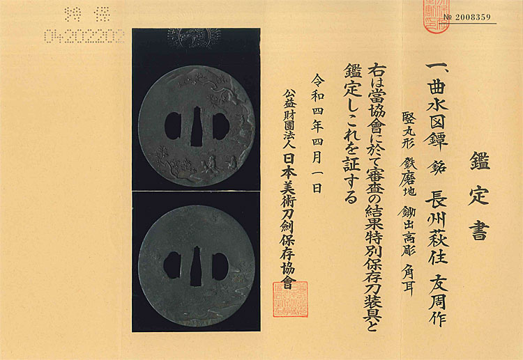 | 鐔 | 長州萩住友周作 | 江戸時代後期 | 特別保存刀装具 | ¥200,000 |