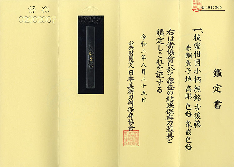 小柄 枝蜜柑図 無銘(古後藤) 室町時代 保存刀装具 ¥130,000