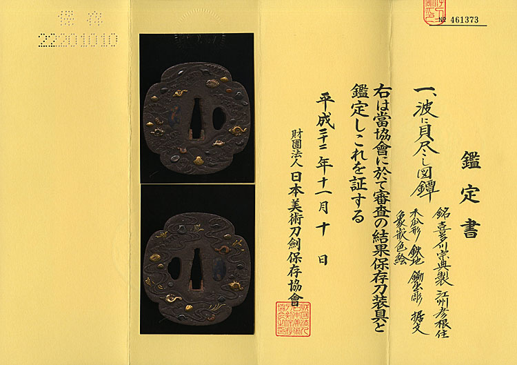 | 鐔 | 喜多川宗典製 江戸彦根住 波に海尽し鐔 | 江戸時代 | 特別保存刀装具 | ¥150,000 |