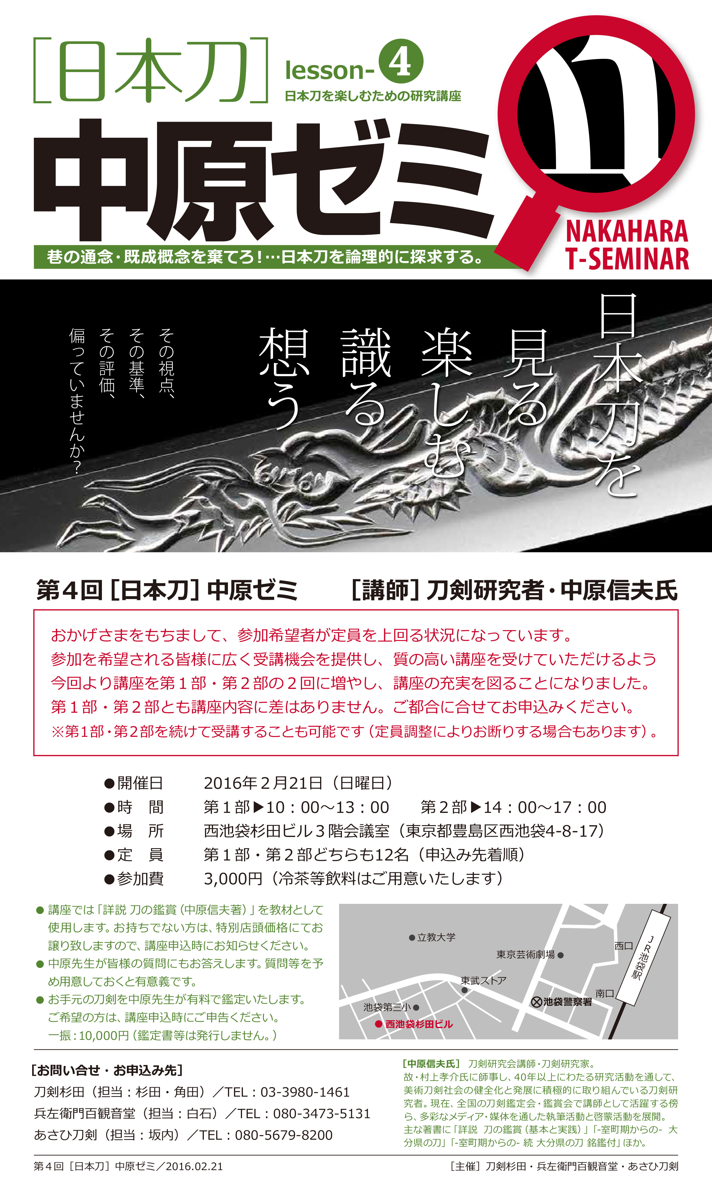 | 播磨大掾藤原重高 越前住 (第25回重要刀剣) 入荷しました |