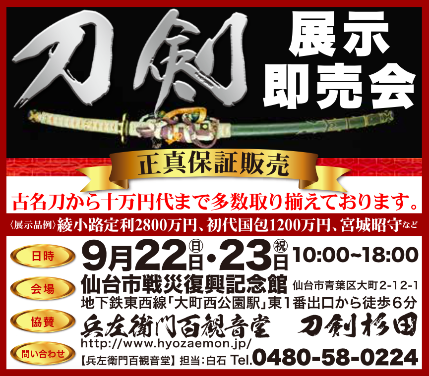 日本刀の買取歓迎致します。お気軽にお電話ください。TEL:03-3980-1461 営業時間 10:00〜17:30(毎週火、水曜日定休日)