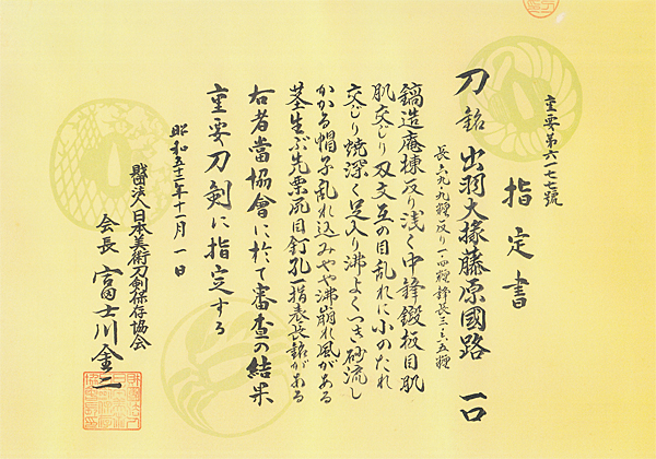 出羽大掾藤原國路 (山城)(畿内) (第25回重要刀剣)