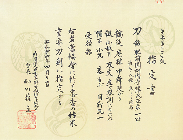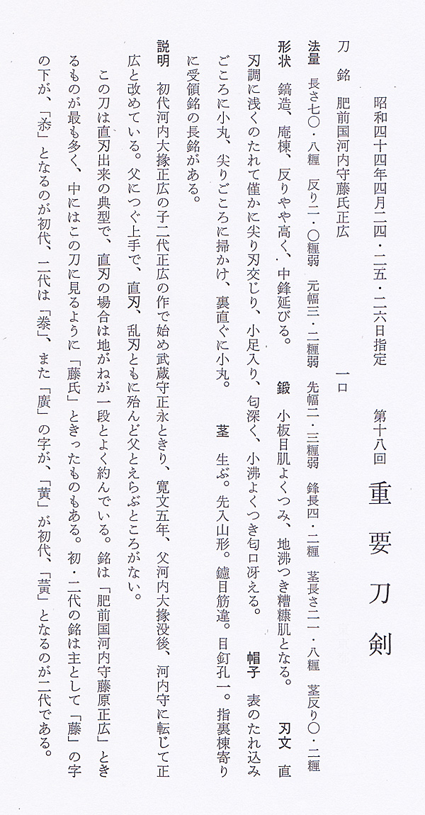 肥前国河内守藤氏正広 (第18回重要刀剣)