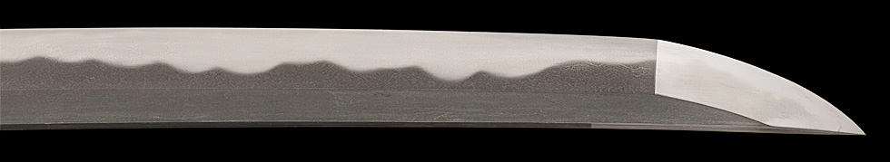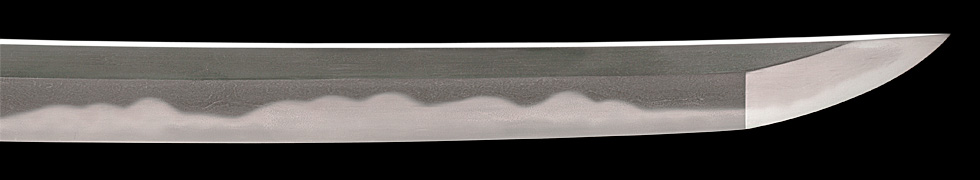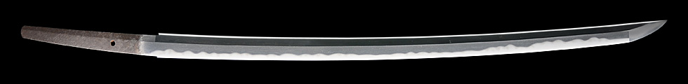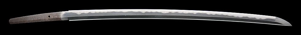本造り庵棟 うぶ茎 板目肌、杢交じりよく練れよく詰む。地沸微塵に厚くつき、細かな地景よく入り淡く沸映り立つ。刃紋は湾れに互の目、丁字、尖り心の刃交じる。匂い深めによく沸づく。湯走りかかり、足、葉盛んに働く。金筋、砂流し頻りにかかり、匂い口明るく見事に冴える。山浦一派、清麿の門。☆☆第23回重要刀剣☆☆
