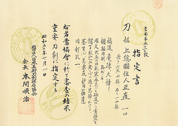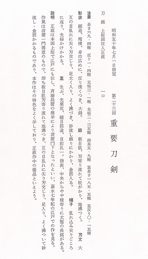 上総国住人正直(上総) (東海道) (第23回重要刀剣)