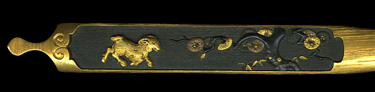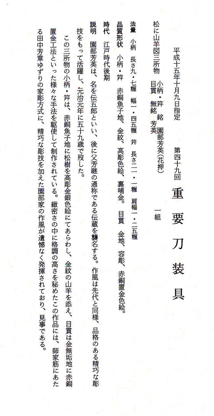 | 三所物 | 小柄・笄 銘 園部芳英(花押) 目貫 無銘 芳英 (第49回重要刀装具) |