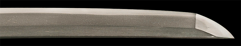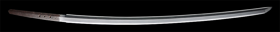本造り庵棟 磨上茎 小板目肌、柾交じりよく練れ詰む。地沸微塵に厚くつき、細かな地景よく入り、淡く映り立つ。刃紋は中直刃、浅く湾れて小互の目交じる。匂い深めによく沸づく。小足、葉盛んに働き、金筋、砂流し頻りにかかる。匂い口明るく見事に冴える。金剛兵衛盛利、明応頃。☆☆第27回重要刀剣☆☆
