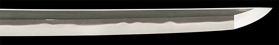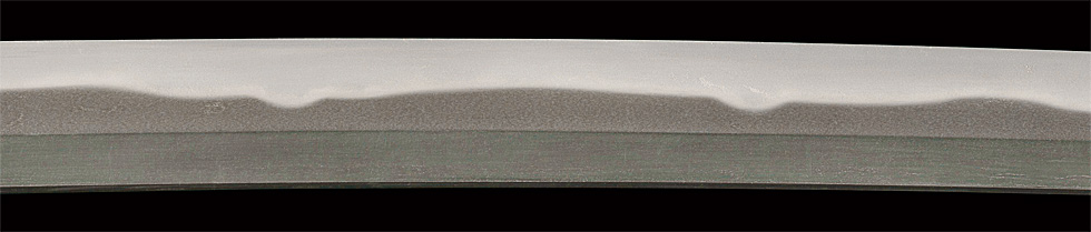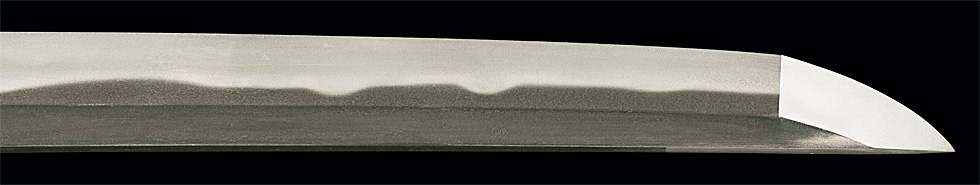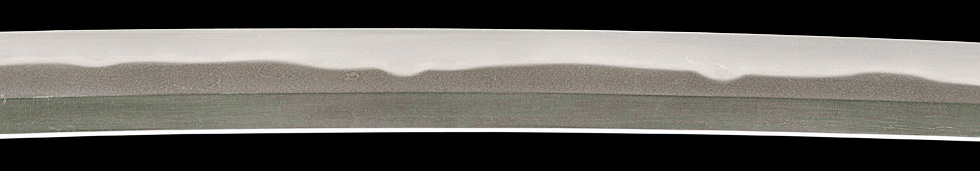 本造り庵棟 うぶ茎 小板目肌、杢交じり見事に詰む。地沸微塵に厚くつき、細かな地景よく入る。刃紋は湾れに互の目、小互の目、尖り心の刃交じる。匂い深く沸厚くつく。沸足盛んに入り、葉働く。刃中、砂流し見事にかかり、金筋頻りにかかる。刃中見事に働き匂い口明るくよく冴える。大和守安定の門。伊達綱宗の慰作相槌をつとめる。☆☆第47回重要刀剣☆☆