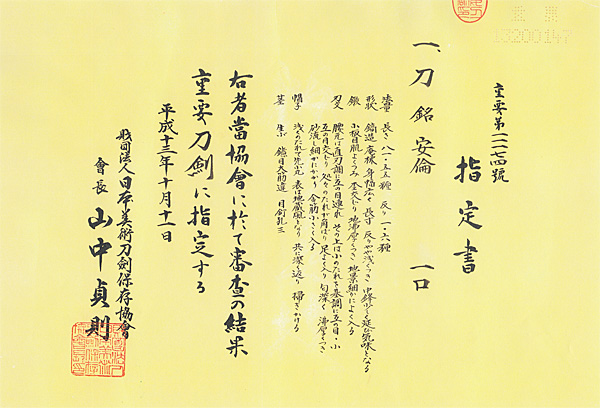【日本刀鑑定証について】 日本美術刀剣保存協会:重要刀剣 【質について】 特優品 【付属品】 白鞘