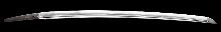 薙刀造り三ツ棟 磨上茎 小板目肌、杢交じりよく練れよく詰む。地沸微塵に厚くつき、細かな地景よく入り、乱れ映り鮮明に立つ。刃紋は直調子、浅い湾れに小互の目交じる。匂い深めに小沸よくつく。金筋、砂流しかかる。匂い口締まり、明るく見事に冴える。表裏に薙刀樋の彫刻。備前國宇甘住。雲生の子。(第31回重要刀剣)
