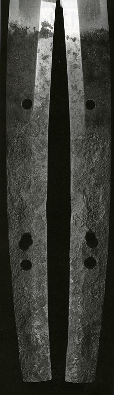 では、この中心が火に罹り表面が剥がされていくと、まず第一に鑢目が不明瞭になり、ついには無くなってしまうと同時に、鏨枕も同様に僅かづつ段々と熔けて崩れて無くなり低くなっていく。火に罹った際の中心の異常は第一番に錆色、そして鑢目の喪失となり、次に銘字の力不足となる。
