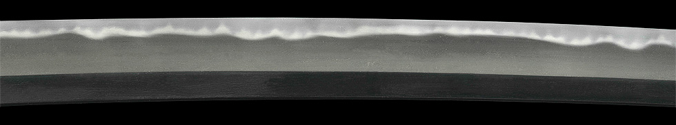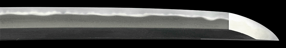 本造り庵棟 うぶ茎 板目肌柾交じり、よく練れ見事に詰む。地沸微塵に厚くつき、地景顕われ白気調の映り見事に立つ。刃紋は互の目乱れに小互の目、尖り状の刃交じり三本杉風に乱れる。匂い口フックラと小沸よくつく。湯走りかかり、小足葉盛んに働く。刃中に金筋頻りにかかり、砂流しかかる。匂い口明るく見事に冴える。永正頃、孫六兼元同人または弟か。☆☆第36回重要刀剣☆☆