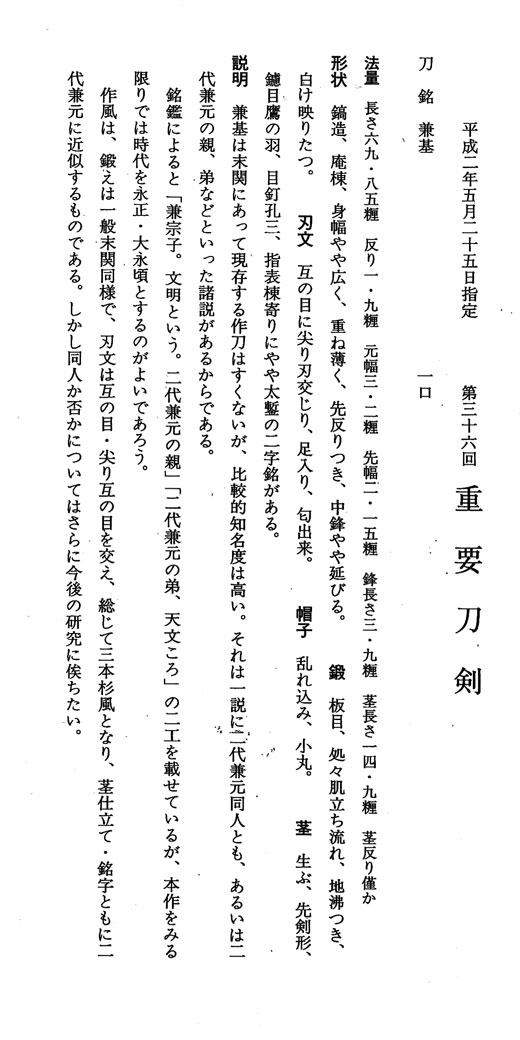 兼基(美濃) (第36回重要刀剣) 室町後期 重要刀剣 特優品