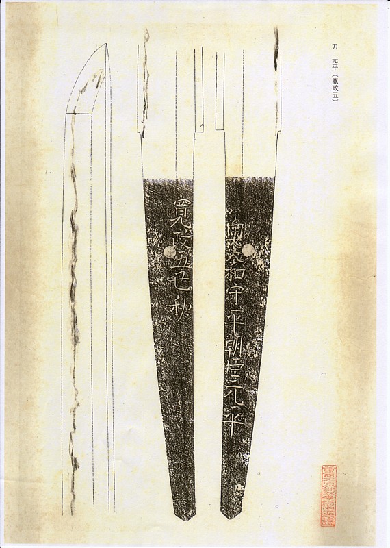 Katana. Oku Yamato no kami Taira ason Motohira Kansei 5 Ushi Aki.