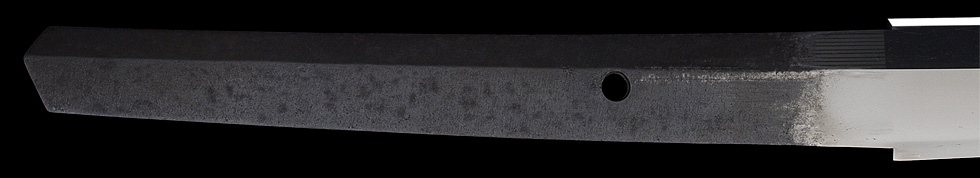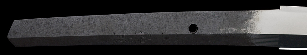 生ぶ 先入山形 鑢目 勝手下り 目釘孔1 Ubu sakiiriyamagata yasurime kattesagari, mekugiana 1 |