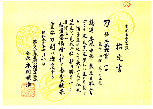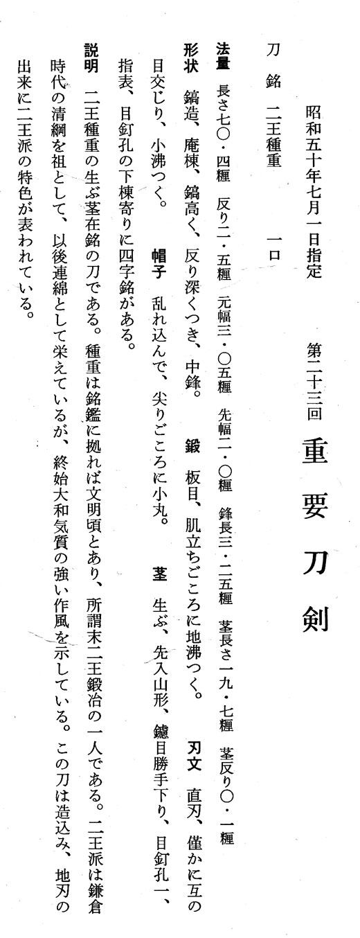 | 刀 | 二王種重 (第23回重要刀剣) | 江戸前期 | 重要刀剣 | 特優品 | 販売終了 |