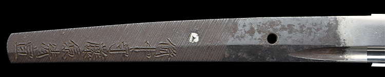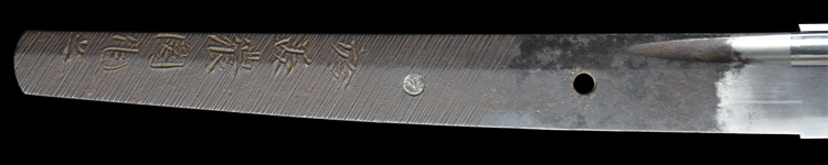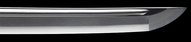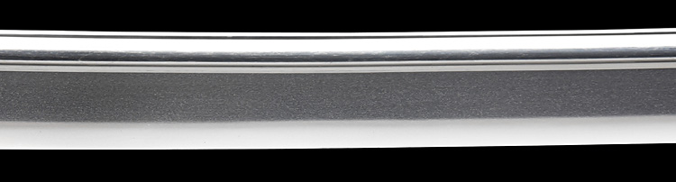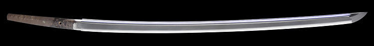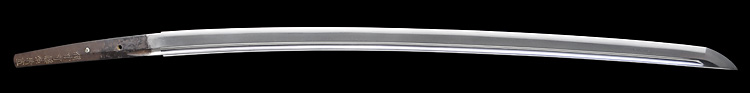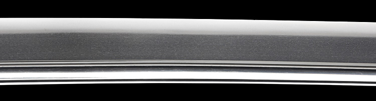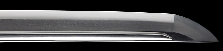 本造り庵棟 磨上茎 小板目肌、杢交じりやや肌立ち心によく詰む。地沸微塵に厚くつき、細かな地景よく入り、淡く沸映り立つ。刃紋は中直刃、浅く湾れて小乱れ交じる。匂い口フックラと小沸よくつく。刃縁ほつれ僅かに小足入り、葉働く。刃縁に金筋、砂流しかかり匂い口明るく冴える。表裏に棒樋の彫刻。関七流の徳永派。初代清宣の子。関鍛冶の頭。黒呂塗鞘打刀拵付き。(特別保存刀剣)