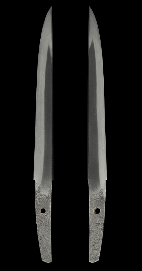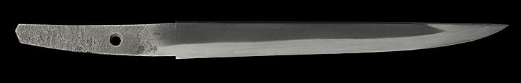 平造り庵棟 うぶ茎 小板目肌、柾交じりよく詰む。地沸微塵につき、細かな地景顕われ、淡く沸映り立つ。刃紋は湾れに互の目交じる。匂い深めに沸よくつく。沸足入り葉働く。金筋、砂流しかかり明るく冴える。