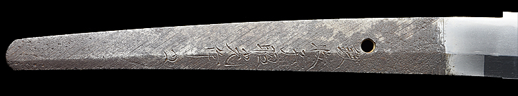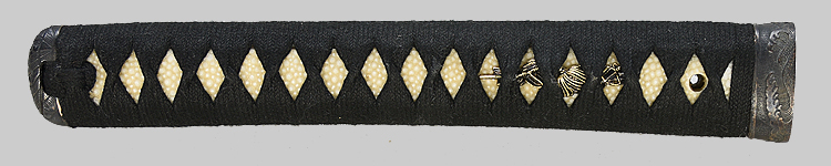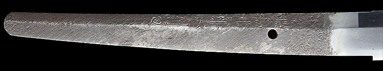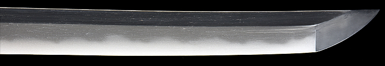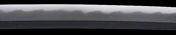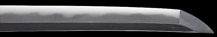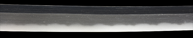 本造り庵棟 うぶ茎 小板目肌、杢交じりよく詰む。地沸微塵につき、細かな地景顕われ淡く沸映り立つ。刃紋は互の目乱れ、尖り心の刃交じる。匂い口フックラと小沸よくつく。湯走りかかり、匂い足、葉盛んに働く。金筋、砂流しかかり匂い口明るく冴える。本名は五十嵐正治。元陸軍受命刀匠。陸軍軍刀技術奨励会会長賞。國工院会員健大宗匠。栗原彦三郎の門。村上藩御用鍛冶の流れをくむ。黒呂塗鞘打刀拵入り。