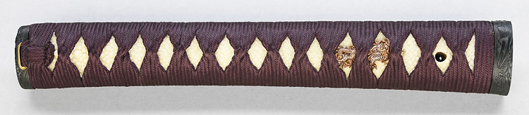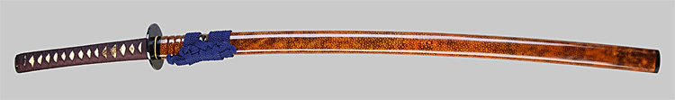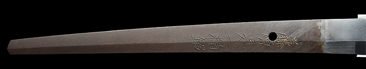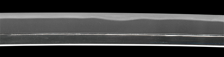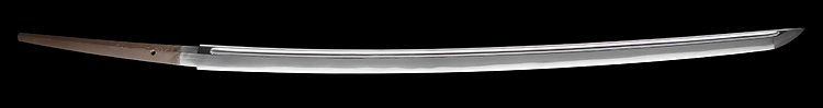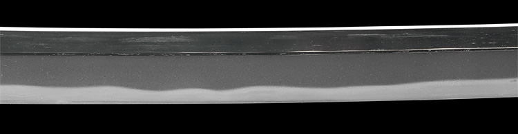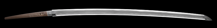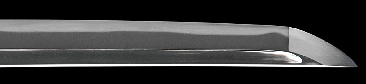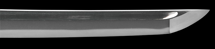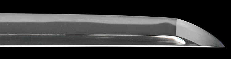 本造り庵棟 うぶ茎 小板目肌、杢交じりややザングリと肌立ちよく練れよく詰む。地沸微塵に厚くつき、細かな地景よく入り淡く沸映り立つ。刃紋は直ぐ調子、湾れに互の目、、尖り心の刃交じる。匂い口深めに沸、小沸よくつく。湯走りかかり、二重刃、喰い違い刃盛んに交え、小足、葉よく働く。金筋、砂流し頻りにかかり、匂い口明るく見事に冴える。表裏に棒樋の彫刻。大和伝見事。通称政太郎。長運斎綱俊の甥。六代目石堂是一の養子となり七代目を継ぐ。運壽斎のちに龍運斎と号す。石堂家屈指の名手。茶塗鮫川研出鞘打刀拵付き。(特別保存刀剣)