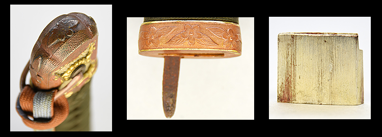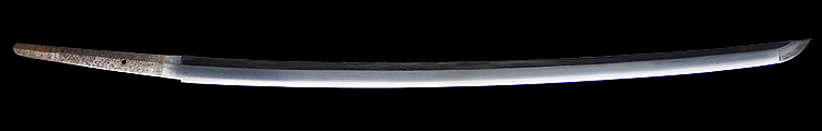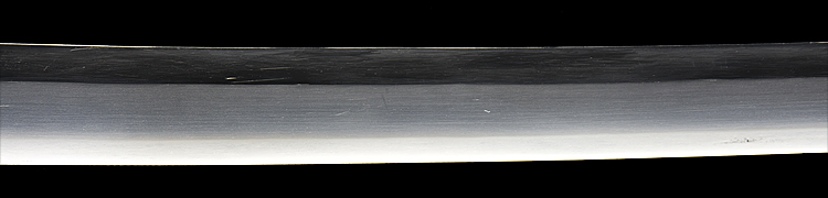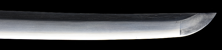 本造り庵棟 うぶ茎 小板目肌、柾交じりよく詰む。地沸微塵につき、細かな地景顕われ、淡く白気映り立つ。刃紋は中直刃、浅く湾れる。匂い口フックラと小沸よくつく。刃縁ほつれ僅かに小足、葉働く。金線、砂流しかかり、匂い口明るく冴える。本名は加藤寿三郎。元陸軍受命刀匠。堀井胤明の門。入賞多数。陸軍軍刀拵入り。