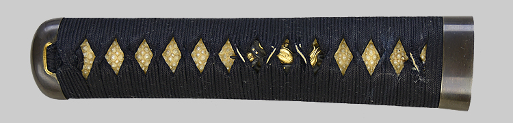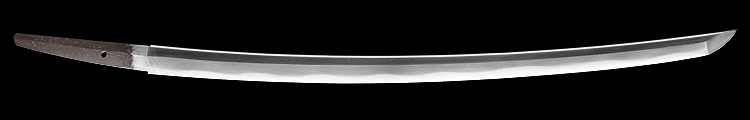 本造り庵棟 うぶ茎 小板目肌、柾交じりよく詰む。地沸微塵につき、細かな地景顕われ、淡く沸映り立つ。刃紋は湾れに大互の目、尖り心の刃交じる。匂い口やや深めに沸、小沸よくつく。喰い違い刃かかり、匂い足、葉盛んに働く。金筋、砂流しかかり、匂い口明るく冴える。本名は助右衛門。江戸法城寺。本国但馬。越前にても打つ。相州貞宗三哲の一人。黑呂塗鞘脇差拵付き。(特別保存刀剣)