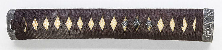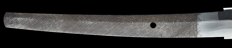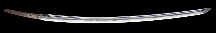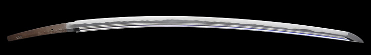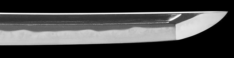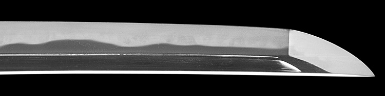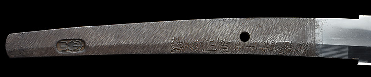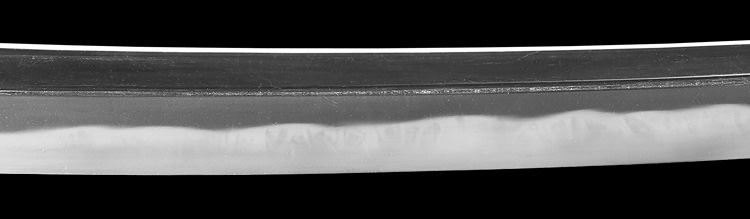 本造り庵棟 うぶ茎 小板目肌、柾交じりよく詰む。地沸微塵に厚くつき、細かな地景顕われ、沸映り立つ。刃紋は互の目丁字乱れ、尖り心の刃交じる。匂い口やや深めに沸、小沸よくつく。沸足、葉盛んに働き、金筋、砂流し頻りにかかる。匂い口明るく見事に冴える。表裏に棒樋に添樋の彫刻。本名は細川主税佐政蔵。初銘を正方、守秀と切る。生国は下野鹿沼。水心子正秀の門。初代良助正義の子。作州津山藩工。黒呂塗鞘打刀拵付き。(特別保存刀剣)