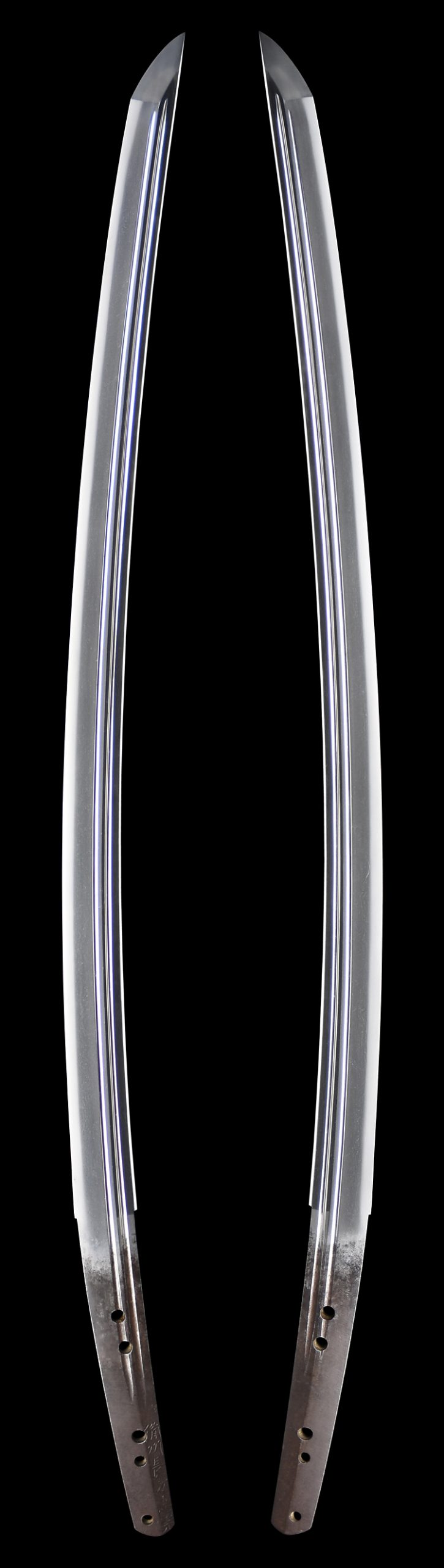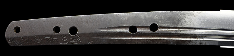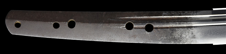 本造り庵棟 磨上茎 板目肌、杢交じりよく練れ詰む。地沸微塵に厚くつき、細かな地景よく入り淡く乱れ映り立つ。刃紋は中直刃浅く湾れて小互の目、小乱れ交じる。匂い口フックラと小沸よくつく。小足、葉、盛んに働き、金筋、砂流しかかる。匂い口明るく見事に冴える。本作は初代彦兵衛忠光の優作である。(刀剣と歴史、令和5年1月号)忠光中隋一の上手。(特別保存刀剣)