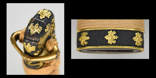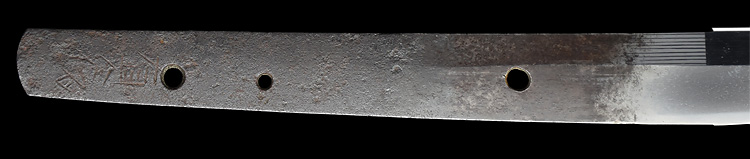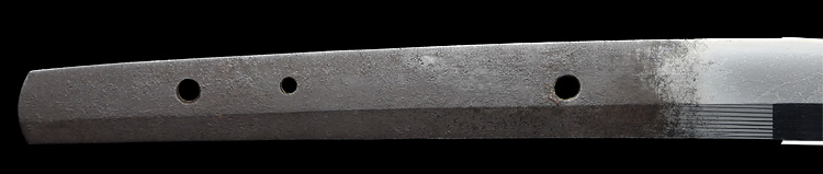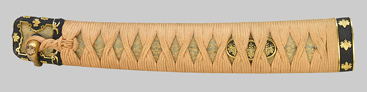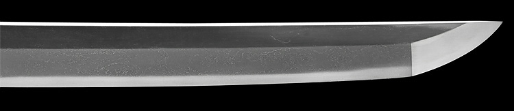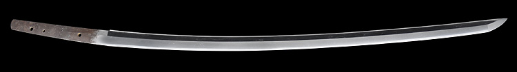 本造り庵棟 磨上茎 板目肌、杢交じりよく詰む。地沸微塵に厚くつき、地景良く入り、淡く乱れ映り立つ。地鉄精美。刃紋は細直刃、浅く湾れて小乱れ交じる。。匂い口フックラと小沸よくつく。刃縁ほつれ、二重刃、喰い違い刃、打ちの毛、湯走りかかる。僅かに小足入り、葉働く。金筋、砂流しかかり匂い口明るく冴える。本作は平安時代末期より鎌倉初期にかけての作です。真依の銘が鮮明に残されており大変貴重です。沃懸地蒔絵螺鈿桐花文鞘糸巻太刀拵付き。(特別保存刀剣)