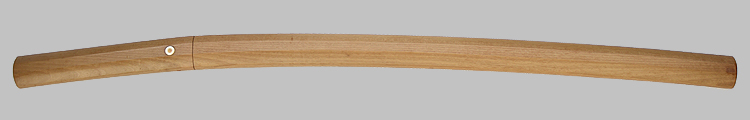 薙刀造り三ツ棟 磨上茎 小板目肌、杢交じりよく練れよく詰む。地沸微塵に厚くつき、細かな地景よく入り、乱れ映り鮮明に立つ。刃紋は直調子、浅い湾れに小互の目交じる。匂い深めに小沸よくつく。金筋、砂流しかかる。匂い口締まり、明るく見事に冴える。表裏に薙刀樋の彫刻。備前國宇甘住。雲生の子。(第31回重要刀剣)